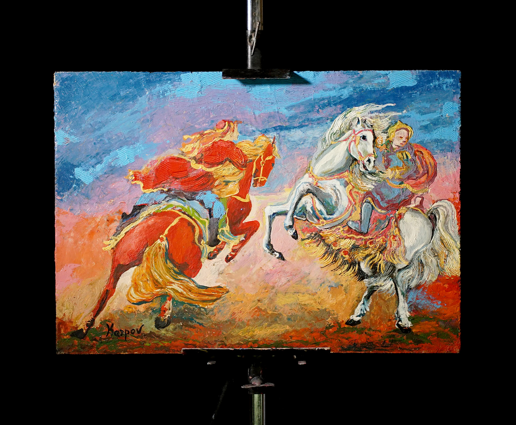 An original pseudonym, chosen to sign her work in remembrance of her Eastern European origins. A vibrant and versatile painter who conveys sensations stemming from her restless, extroverted, passionate, and impetuous-till-rebellion soul.